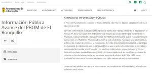 Ante este contexto normativo y las necesidades de El Ronquillo, el Ayuntamiento ha iniciado la revisión de su planificación general adaptada a la LISTA, impulsado por medidas de apoyo del Área de Cohesión Territorial de la Diputación Provincial de Sevilla, que incentivan un cambio en el modelo de asistencia técnica en asuntos urbanísticos a través de subvenciones. Esta iniciativa busca modernizar y adaptar el planeamiento urbano de El Ronquillo a las nuevas demandas y a la normativa actual.